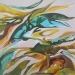 Collage van verschillende stenen geschilderd op geschept papier. In baklijst